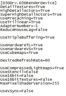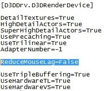 D3DDrv.D3DRenderDevice] - Change ReduceMouseLagg=True to